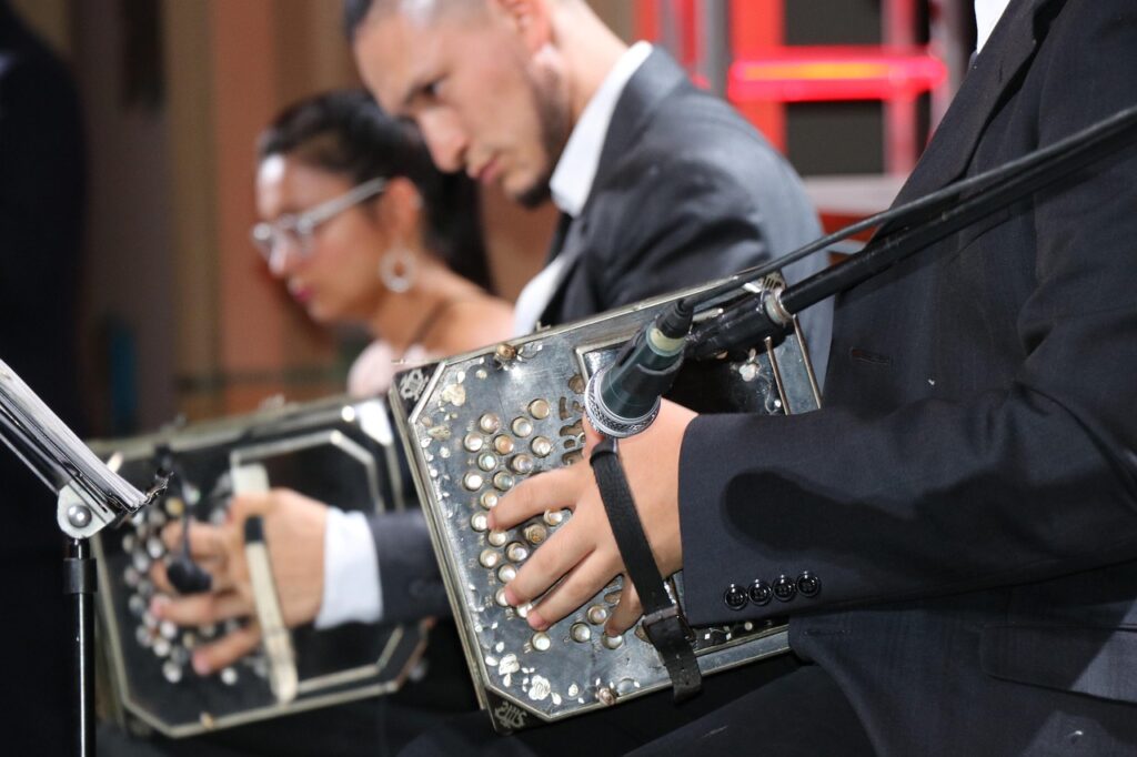 Additionally, the signature instrument found in tango music is the bandoneon. Originating from Germany as the creation of instrument inventor Heinrich Band, the bandoneon at first glance is alike in size and appearance to the more popular accordion. However, the bandoneon lacks piano keys on one side, with both sides using a button layout. Additionally, its distinctive nasal sound suits the dramatic yet melancholic character of tango dancing.